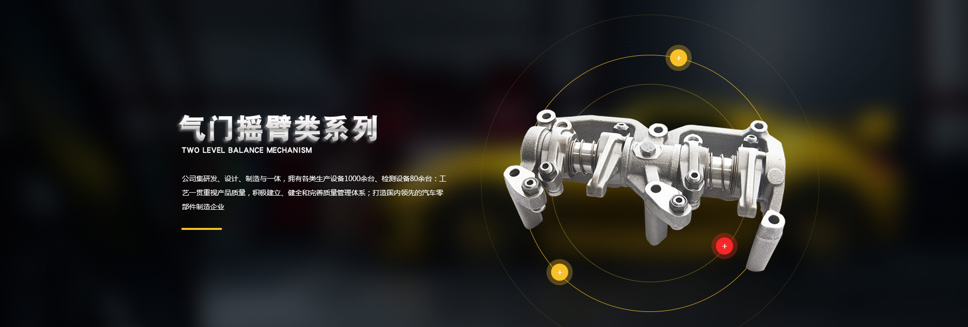 汽车发动机配气机构的气门摇臂、摇臂座、摇臂轴、摇臂轴总成、EVB排气制动系统产品、液压挺柱、机械挺柱、气门推杆、弹簧座及发动机轮系自动张紧轮、EGR阀、发动机二级平衡机构等汽车零部件